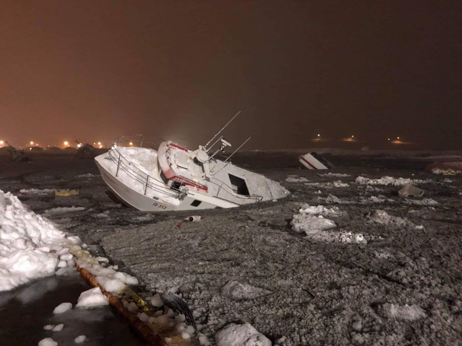 og það orsakaði gríðarlega mikla flóðbylgju sem olli því að margir bátar sukku og skemmdust í höfninni á Flateyri,