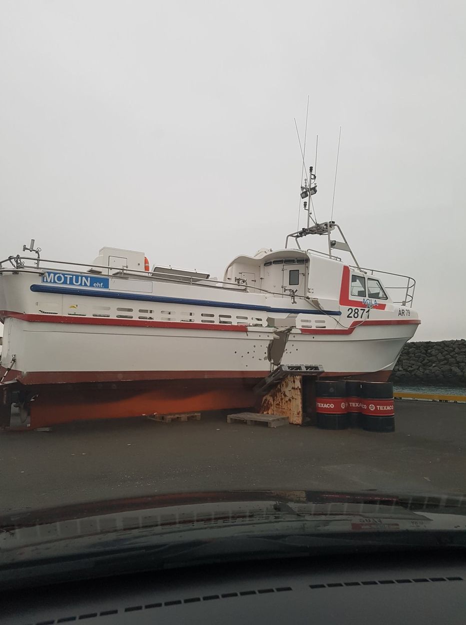 nokkuð miklar skemmdir eru á Agla ÁR og hefur báturinn staðið uppá bryggju núna í um eitt og hálft ár án viðgerðar.