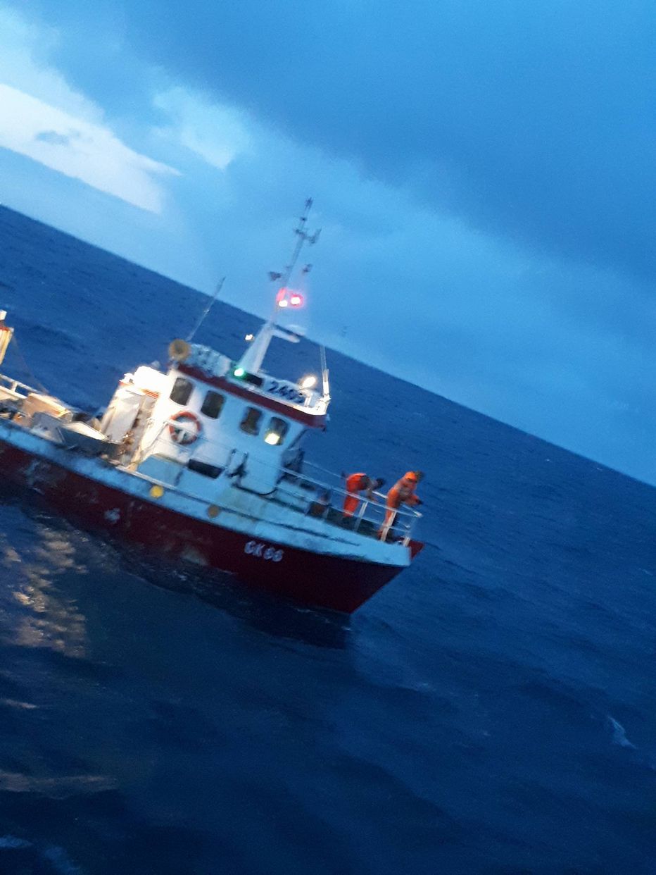 Bjössi vildi koma á framfæri miklum þökkum til áhafnarinnar á Hannesi Þ. Hafstein fyrir mikla fagmennsku í vinnubrögðum sínum við að koma og taka bátinn í tog.