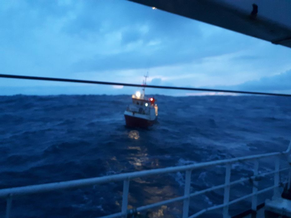 Bjössi sagði að enginn hætta hefði verið enda mikið af bátum á svæðinu enn veður fór versnandi. og um 5 metra ölduhæð. Uk borð í Andey GK voru 3 tonn af fiski og báturinn sjálfur er 42 tonn af þyngd
