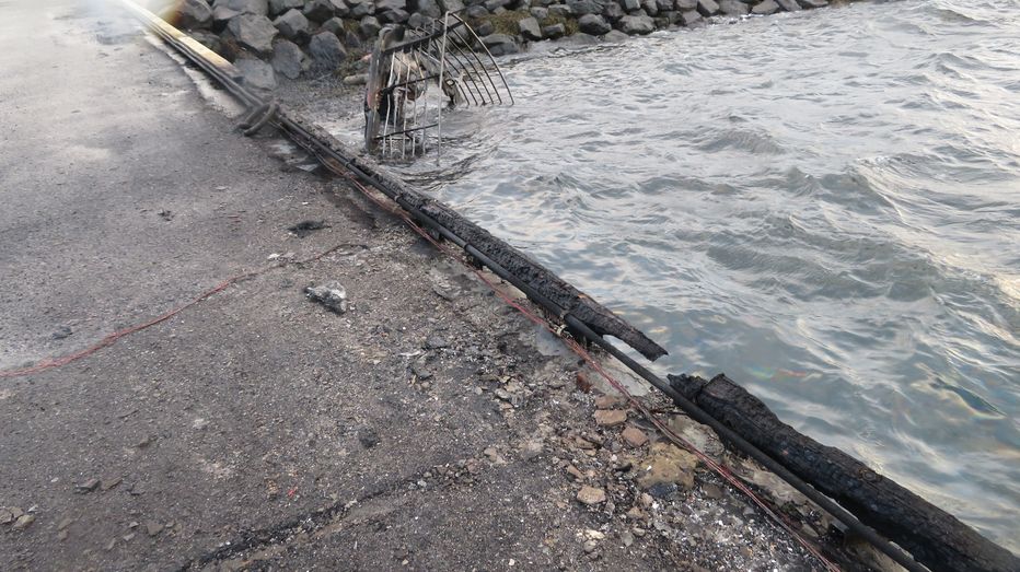 t.d skemmdist rafmagnskassi sem við við endan á bryggjunni því hitinn frá eldinum bræddi allt sem inn í kassanum var.