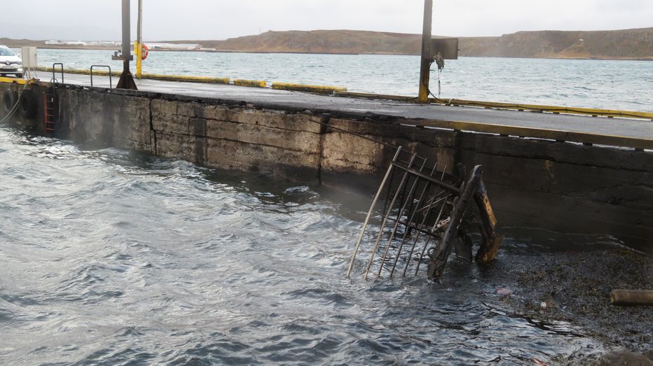 t.d skemmdust bryggjukantar mjög mikið og allar rafmagnslagnir eru ónýtar.