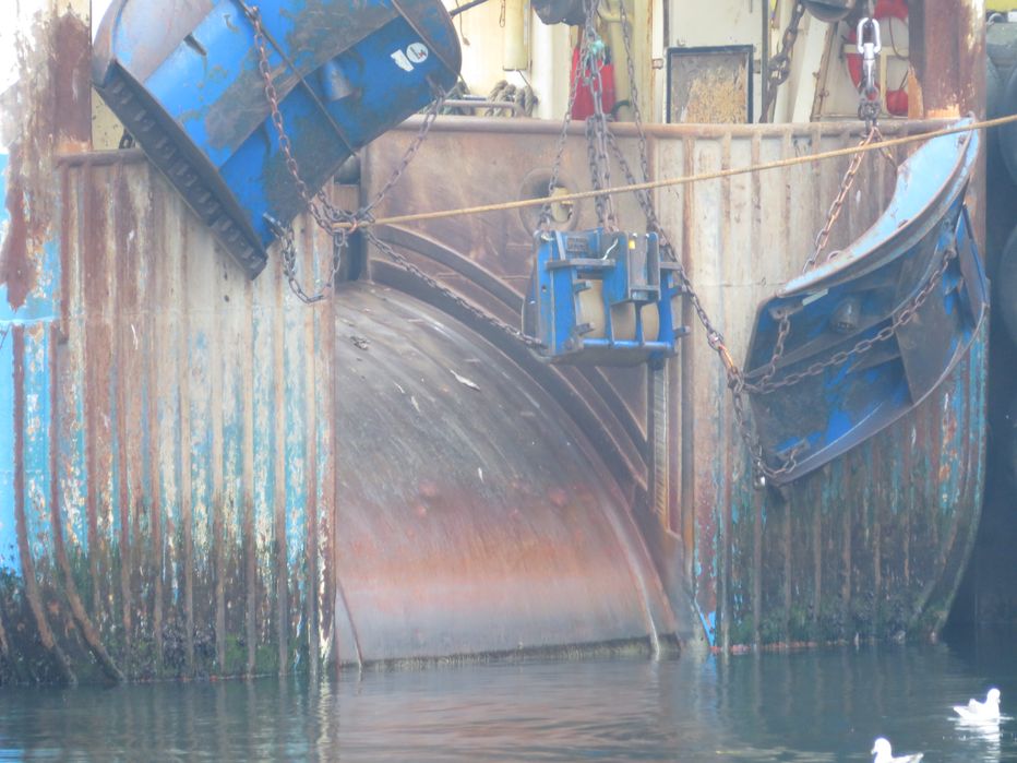 Það geta nú oft verið mikill sláttur á hlerunum þegar þeir koma uppúr sjónum og að viðkomandi skipi og því er spurning hvernig skrokkurin eða skuturinn á Breka VE muni þola þessi átök