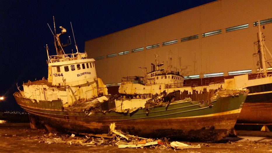 Fyrrum Gunnar Bjarnarson SH sem síðast hét Blómfríður SH liggur nú á dauðadeildinni í Njarðvík, enn verið er að klippa bátinn  í sundur.