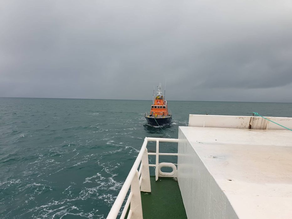 björgungarskipið Hannes Þ. Hafstein frá Sandgerði sem er á forræði Sigurvonar kom út og tók Langanes GK í