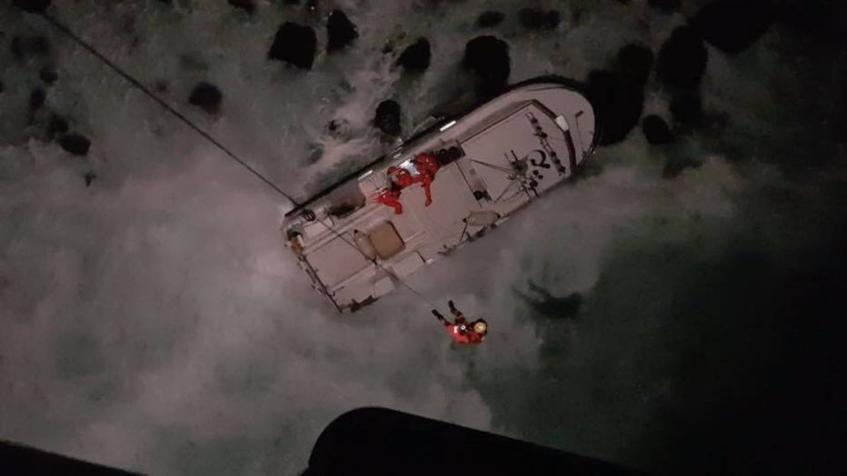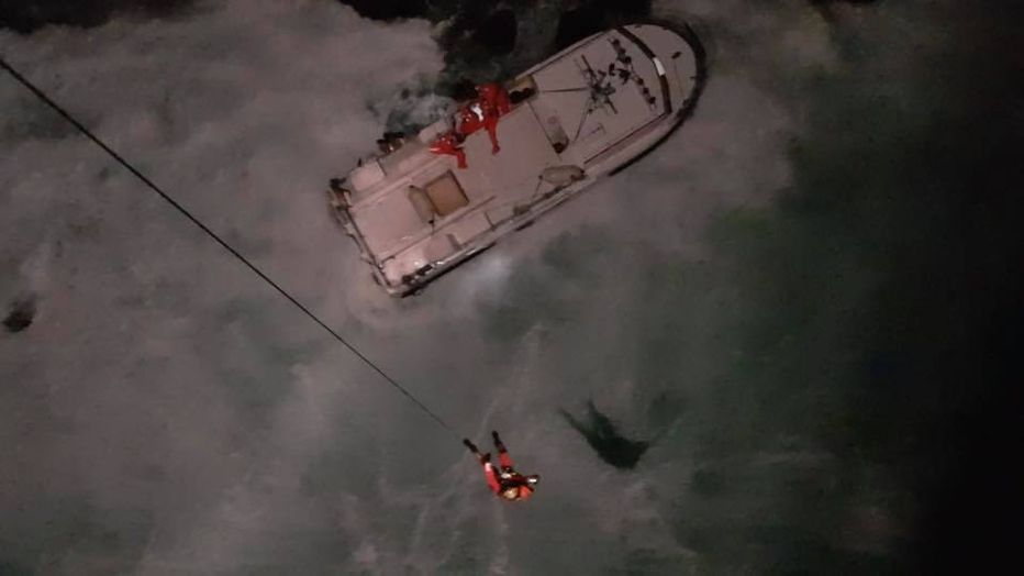 TF EIR kom á vettvang kl 23:42 og hófst þá áhöfn þyrlunnar að bjarga áhöfn bátsins sem taldi fjóra menn.
