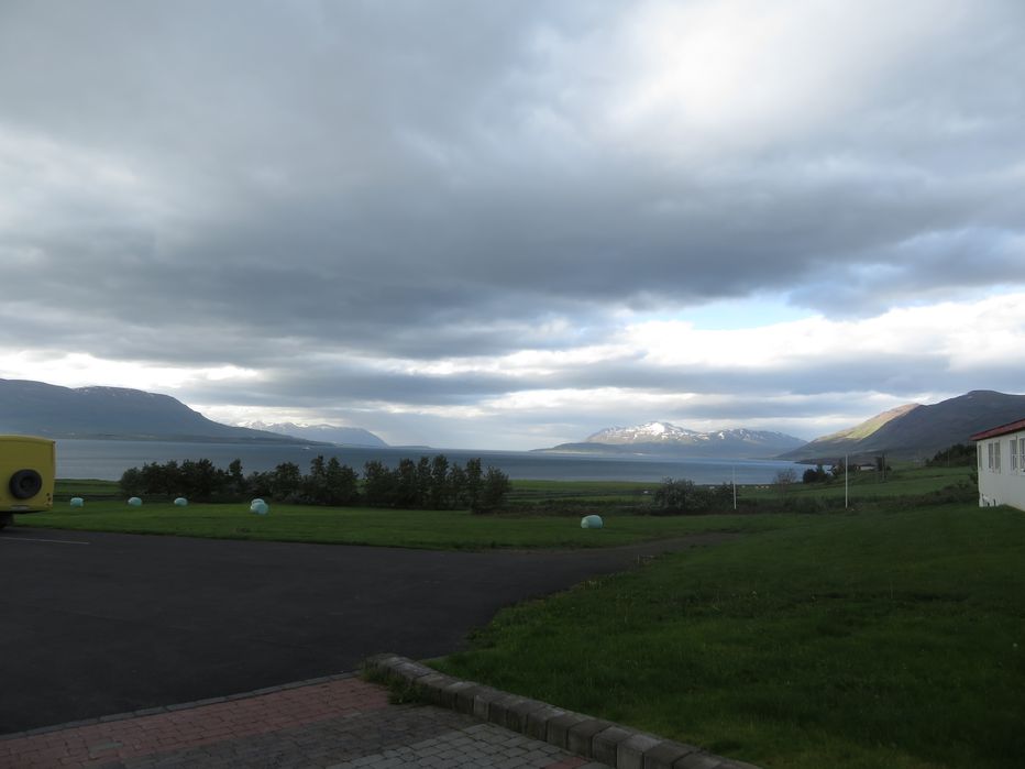 Er Staddur í Sveinbjarnargerði núna og var útí á stétt og var að horfa út Eyjafjörðinn og sá þá einhvern bát vera að sigla inn fjörðinn,