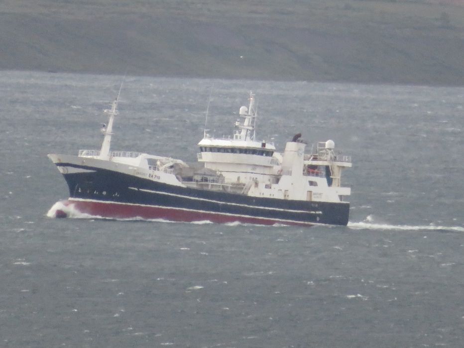 var ´þá myndavélin tekinn upp og byrjað að súmma og kom þá í ljós að þetta var Margrét EA sem var að sigla inn fjörðin,