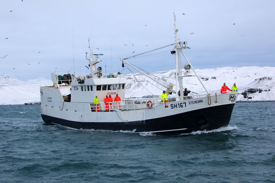 Steinunn SH kom til hafnar drekkhlaðinn og minnti um margt á síldarbátanna sem voru að svipaðari stærð og Steinun SH