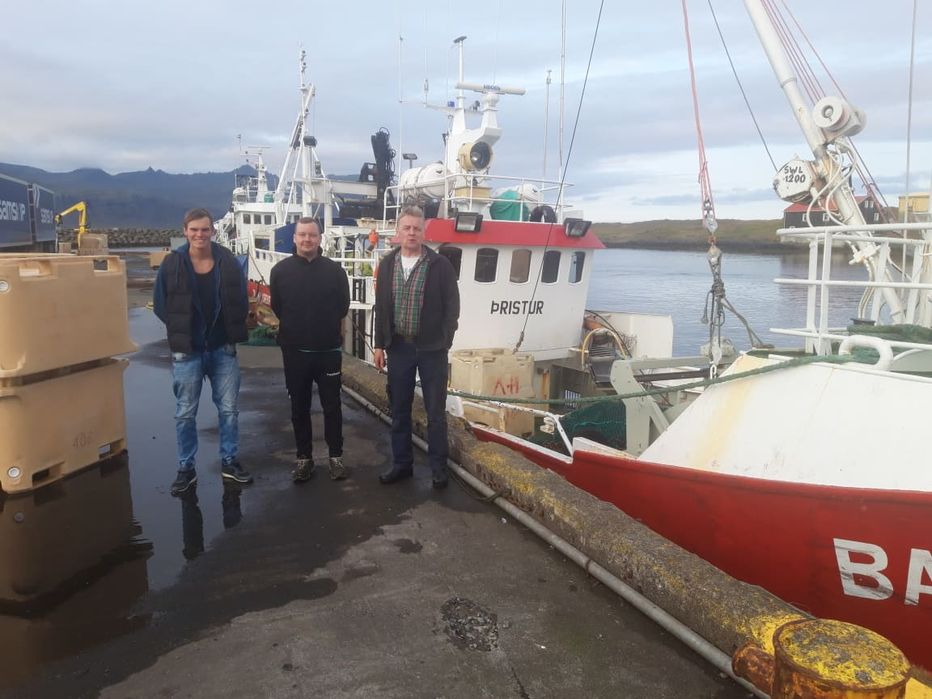 Áhöfnin á Þrist BA . Frá Vinstri Pawel Lesniak vélstjóri, Hörður Stefánsson kokkur og Jón Ölver Magnússon skipstjóri.
