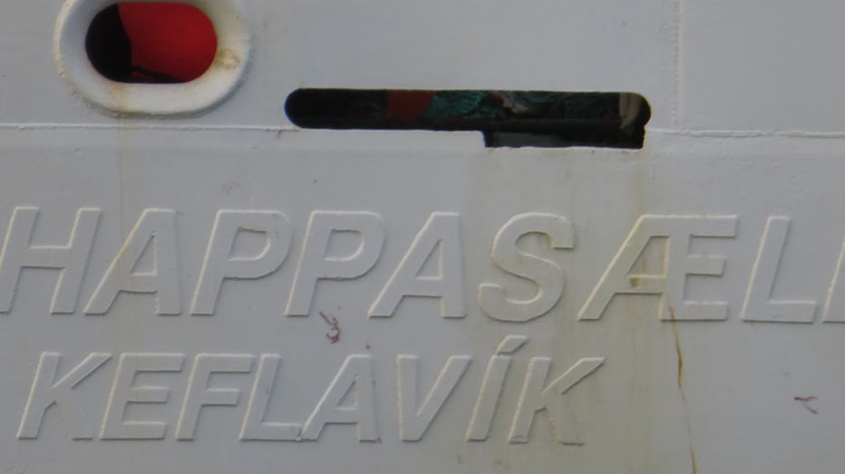 þá hét báturinn fyrst Happasæll KE og nafnið Happasæll KE sést aftast á bátnum, eins og sést líka á mynd hérna að neðan,