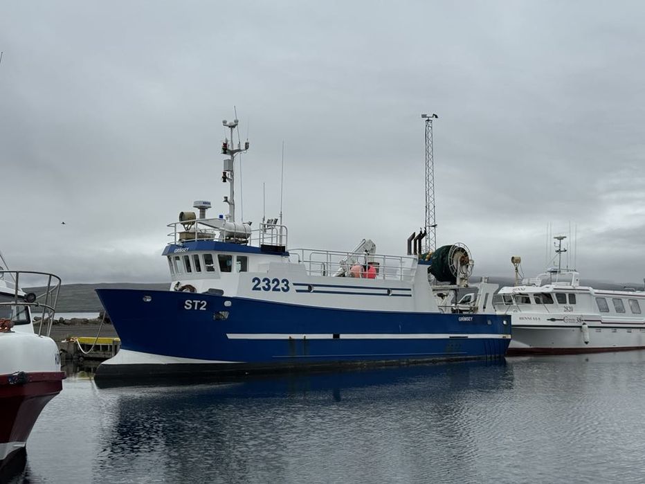því að nýja Grímsey ST er kominn, og reyndar þá er báturinn blár á litinn, en fyrirtækið á alls þrjá báta