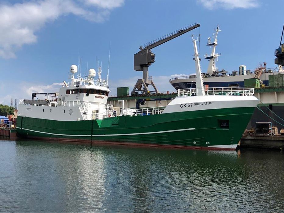 Nýr eða endurbættur Sighvatur GK sem er núna lagður af stað til íslands,