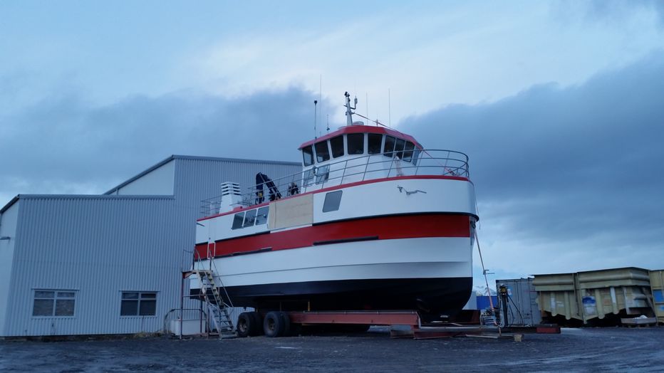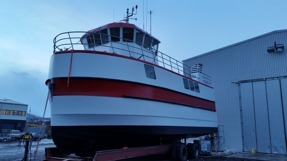 jú hann hefur tafist og tafist og núna sirka tveimur árum síðan er báturinn allavega kominn útúr húsi enn nóg er eftir að gera innan í bátnum eins og síðuritari komst að þegar hann skoðaði bátinn með Sverri Bergmann framkvæmdastjóra fyrirtækisins.