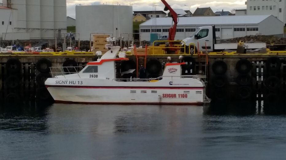 Eina hreyfinginn var þegar að báturinn Signý HU sem er skráður á Blönduósi kom og færði sig undir einn kranan. verið var að hífa um borð í bátinn útbúnað fyrir línuna.