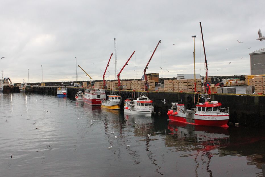 Addi Afi GK fremstur, Ölli Krókur GK, Helga Sæm ÞH, KAtrín GK, Jói Brands GK og fram við þá er svo Óli Gísla GK að bíða löndunar